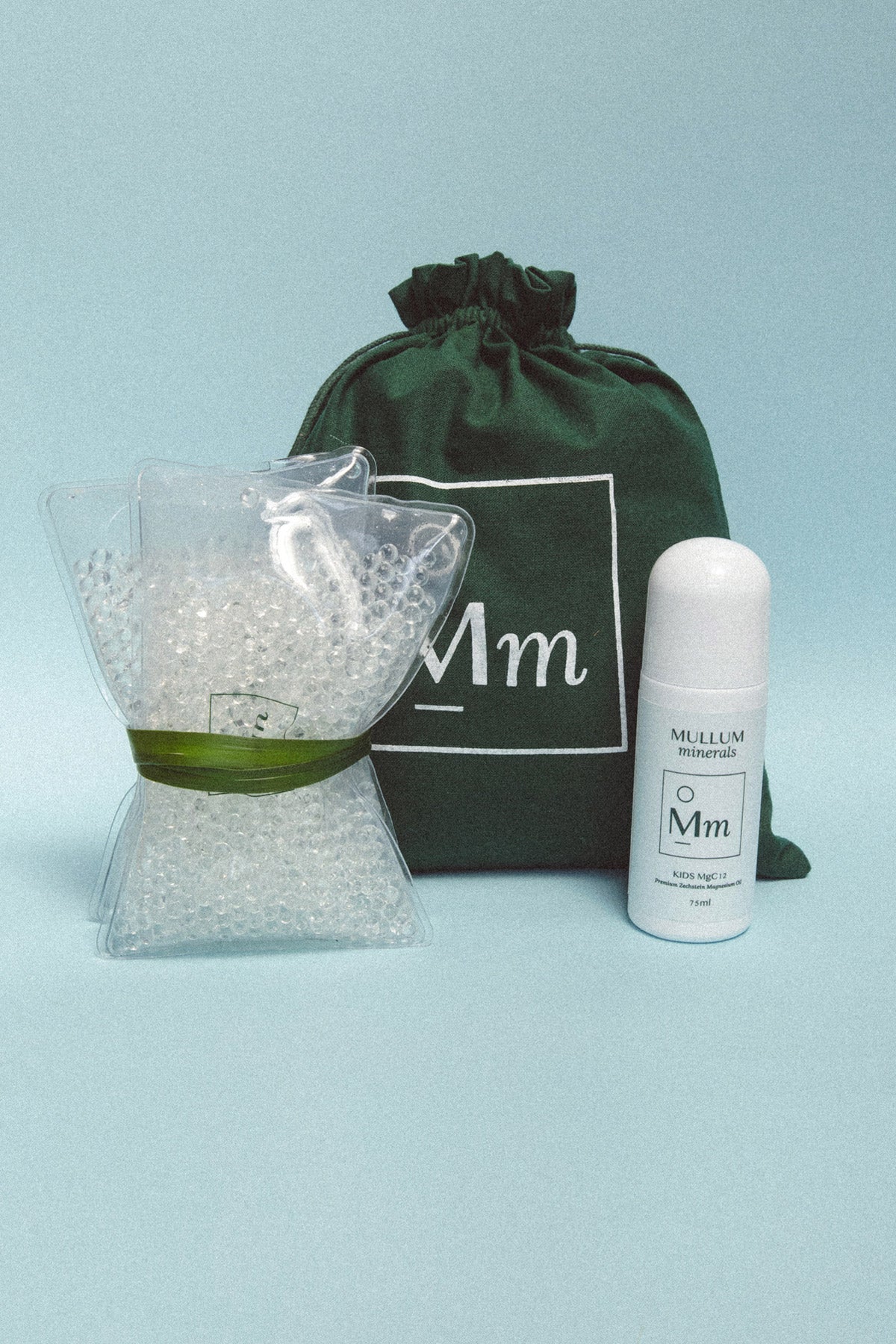 Each Mullum Minerals kit arrives in a Mullum Minerals cotton drawstring pouch, perfect for keeping your everyday magnesium essentials together.