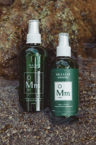 The Mullum Minerals Feel the Flow Kit brings together two of our most loved magnesium essentials in their generous 250ml sizes: the MgCl₂ Magnesium Mist and the MgCl₂ Magnesium Salve.